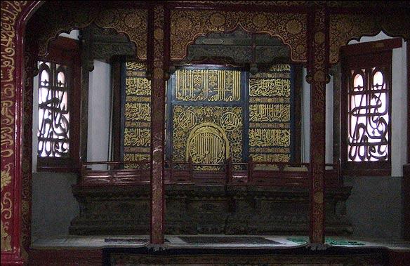 ومن ضمن محفوظات المسجد لوح منقوش عليه أمر أعلنه الإمبراطور كانغشي سنة 1694م بخصوص المسلمين. إذ قيل أنه لما وجد الحاقدين على الإسلام المسجد مضاء بالأنوار المتألقة في ليالي رمضان، وشي بالمسلمين إلى الإمبراطور بدافع التقرب أليه، وزعم قائلا: "أن المسلمين يجتمعون ليلا، ويتفرقون نهار، فيبدو أنهم يستعدون للتمرد". فتوجه الإمبراطور في بزة مدنية إلى المسجد خفية للتحقق من الأمر. ولكن تبين له أن كل ما ورد في وعظ الإمام هو من التعليمات الإسلامية الداعية إلى الخير والناهية عن الشر، فما لبث أن أصدر أمرا جاء فيه: "ليكن في علم جميع المقاطعات أنه إذا افترى أحد الموظفين أو الرعايا على المسلمين بالتمرد، متذرعا بذريعة تافهة، فلا بد من معاقبته معاقبة شديدة قبل استشارة القيادة العليا. وليتمسك المسلمون بالإسلام دون السماح لهم بمخالفة أمري هذا."