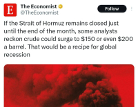 The Economist: Some analysts believe that if the Strait of Hormuz remains closed until the…