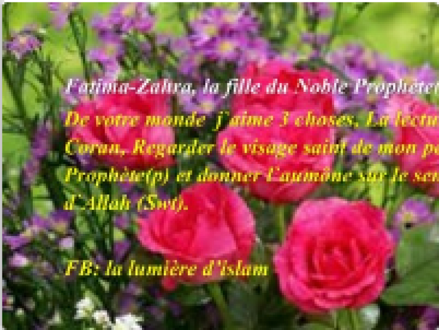 On entendait souvent le Noble Prophète (P) dire:«Allah est content de ce qui contente Fâtima et se met en colère contre ce qui la courrouce».
