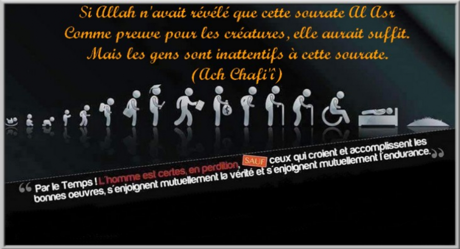 Sauf ceux qui croient, accomplissent les bonnes œuvres, se recommandent mutuellement la vérité et se recommandent mutuellement la patience. (3)