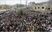 A Yarzé, à l'est de Beyrouth, les rues conduisant à la chancellerie étaient envahies d'une foule immense, arborant des portraits de M. Assad et des drapeaux de la Syrie et du Hezbollah, le mouvement de la résistance libanaise .