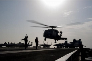 "Les membres de l'équipage à bord de l'hélicoptère ne se sont pas sentis en danger, cela n'empêche que ce fut un geste non professionnel.", ont-ils prétendu rappelant que l'hélicoptère a regagné le porte-avions Dwight D. Eisenhower.