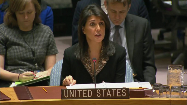 ورفضت المندوبة الأميركية في مجلس الأمن نيكي هايلي الاتهامات بأن واشنطن تنسحب من عملية السلام في الشرق الأوسط، معتبرةً أن "تصريحات القادة الفلسطينيين لا تخدمهم وواشنطن قدمت الكثير من اجل الشعب الفلسطيني"، واعتبرت المندوبة الأميركية أن الأمم المتحدة تسيء مجدداً إلى إسرائيل.