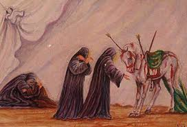 Then Gabriel (Jibreel) began to weep. Prophet Muhammad (saw) asked why Gabriel (Jibreel) wept and he answered, “O Messenger of Allah, from early on in life this girl will remain entangled in tribulations and trials in this world. First she will weep over your separation (from this world); thereafter she will bemoan the loss of her mother, then her father, and then her brother Hasan. After all this she will be confronted with the trials of the land of Karbala and the tribulations of that lonely desert, as a result of which her hair will turn grey and her back will be bent.”
