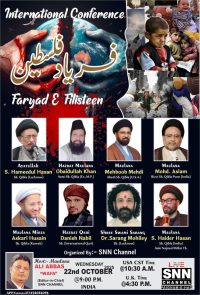 मुंबई / ज़ूम के माध्यम से एस.एन.एन. चैनल की ओर से “फ़रियाद-ए-फ़िलस्तीन” के शीर्षक पर हुज्जतुल-इस्लाम वल-मुस्लेमीन सय्यद हमीदुल हसन…